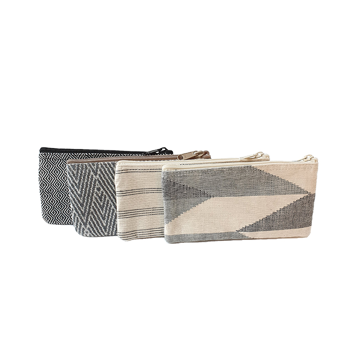A cool pouch to store what you want. Handy for makeup stuff or to store pens, pencils and scissors. ANNA NERA made them in different sizes and dessins. Woven and sew by hand with love. The inside is fully lined with unbleached cotton. Take good care of it.