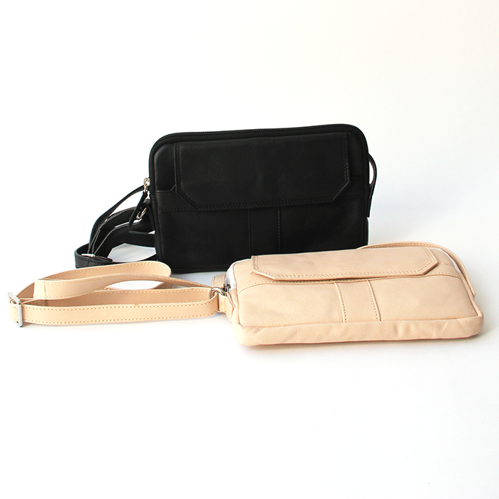 A handy little handbag for you. With a closing zipper and inside different pockets. It can store your phone, cards and keys easily. On the outside their is a seperate pocket for the items you want acces easily. The leather is in its natural colour, so not dyed with any chemicals. Good for you and good for the enviroment. Handmade by our artisans in Bangladesh.