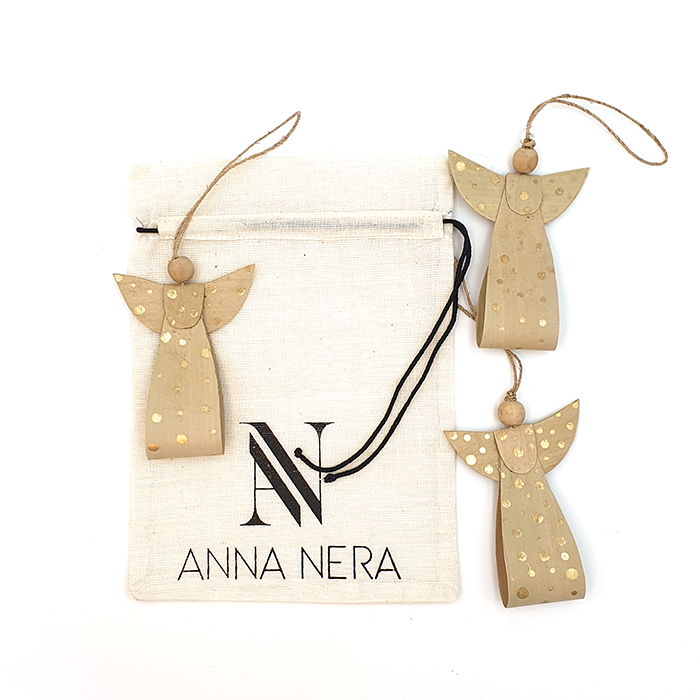 Angel ornament natural/gold AN pouch set/3