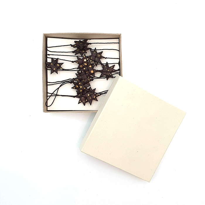 These star garlands are handmade by over 50 women now, who get there income and status and can buy healthy food for their family and give their children an education.